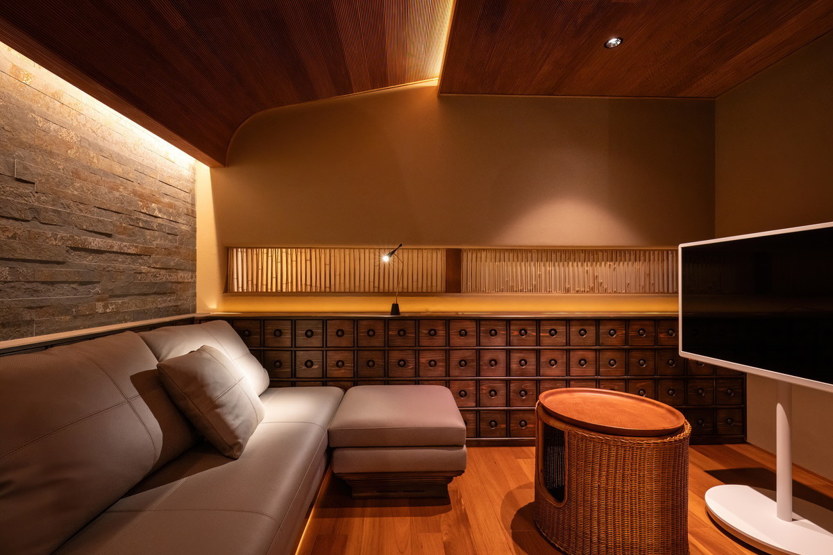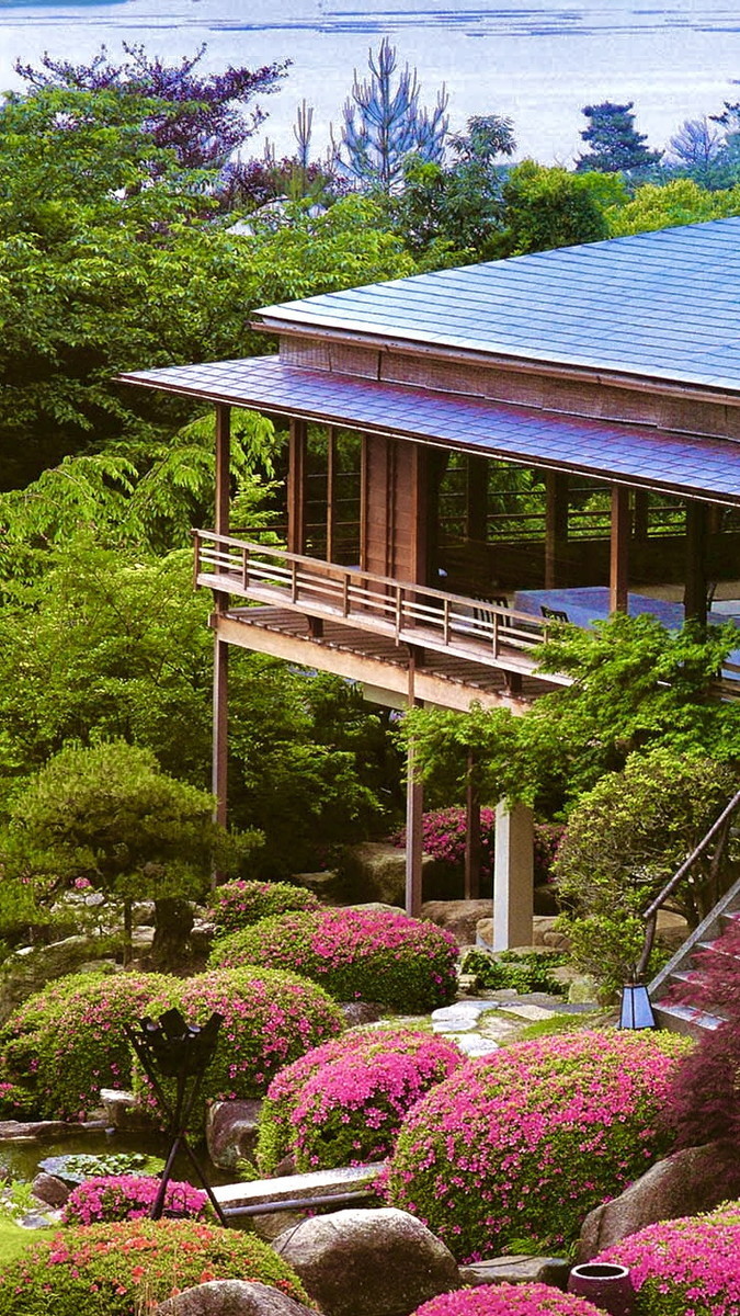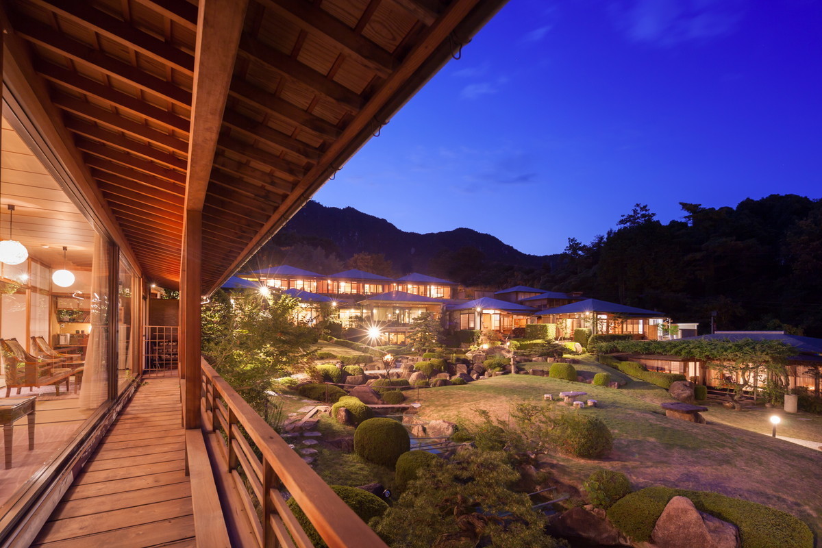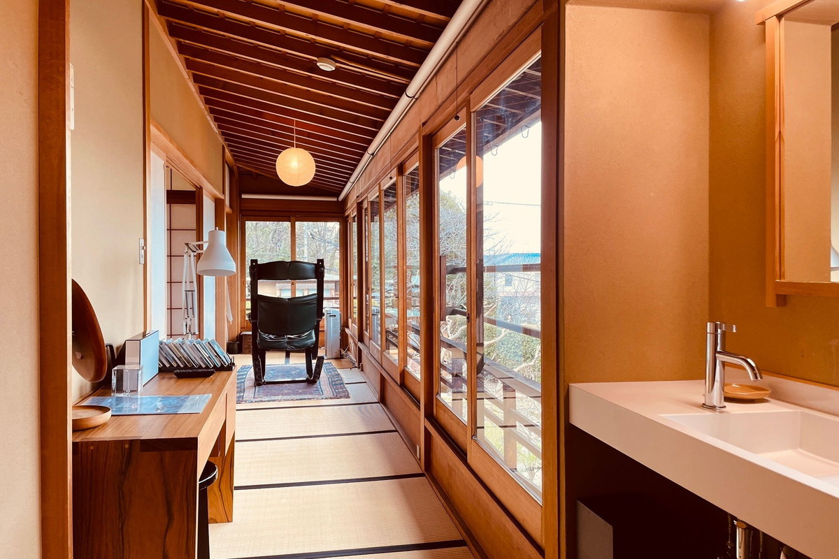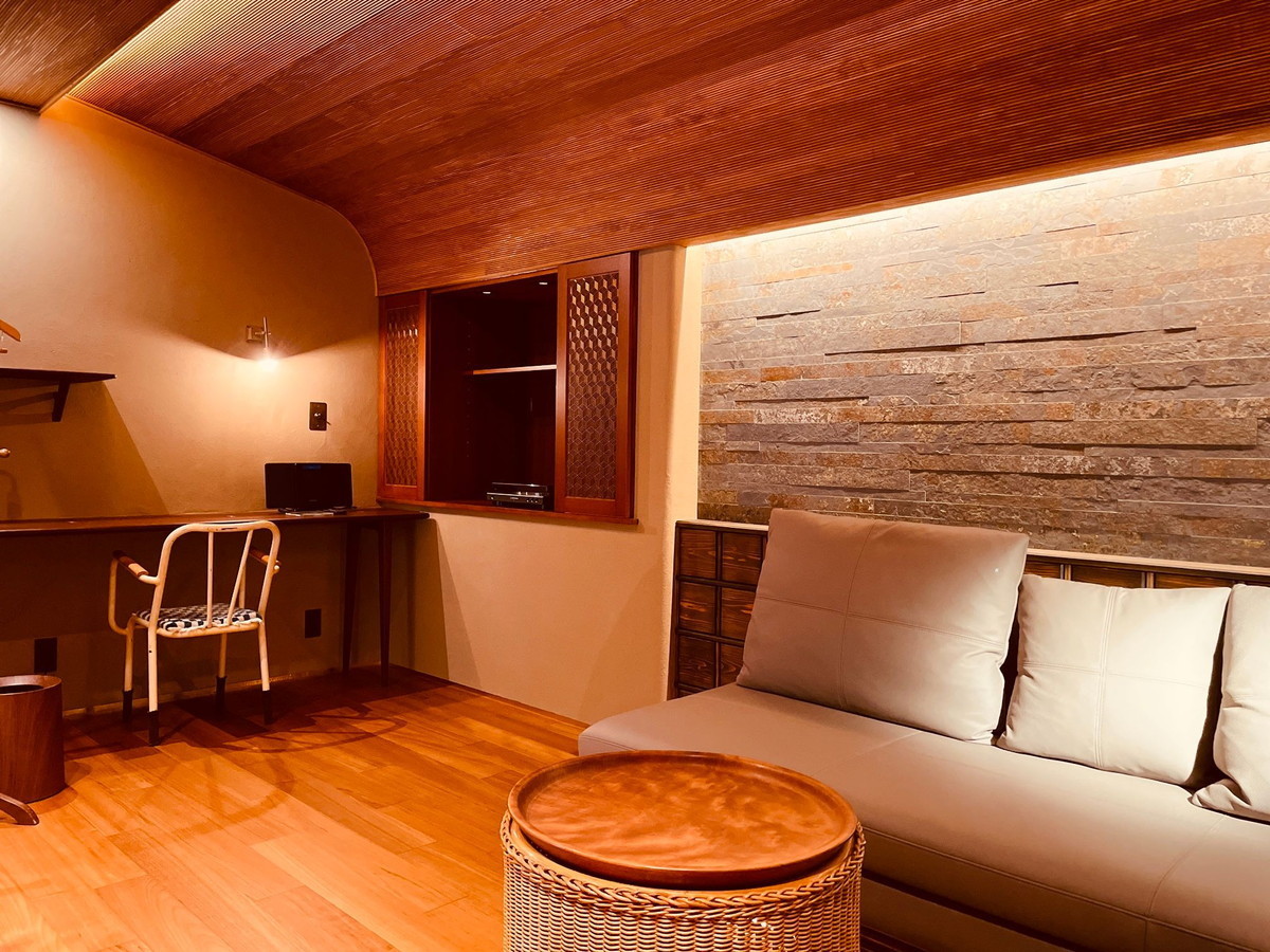 This room was constructed in a raised-floor style that projects into the garden. It contains a total of 43 tatami mats, and is a large room suitable for families. The large windows offer a panoramic view of the sea, mountains, sky, and garden. In springtime, a beautiful vista of cherry blossoms can be seen.