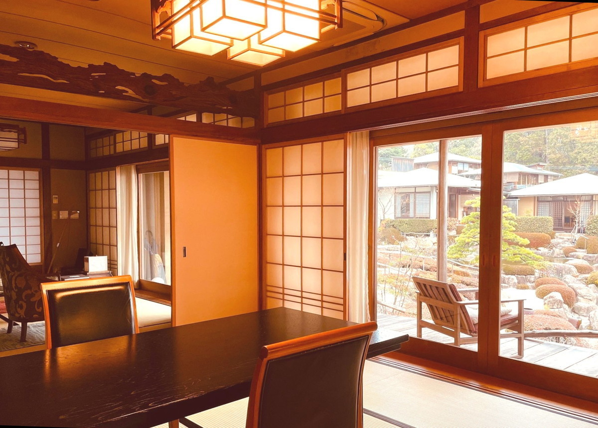 This large 19.8 m2 room offers a beautiful view of the garden. The slightly darkened bath includes an aroma set, candles, and music. While the bath in this room offers a relaxing experience, it is not sourced from a natural hot spring.