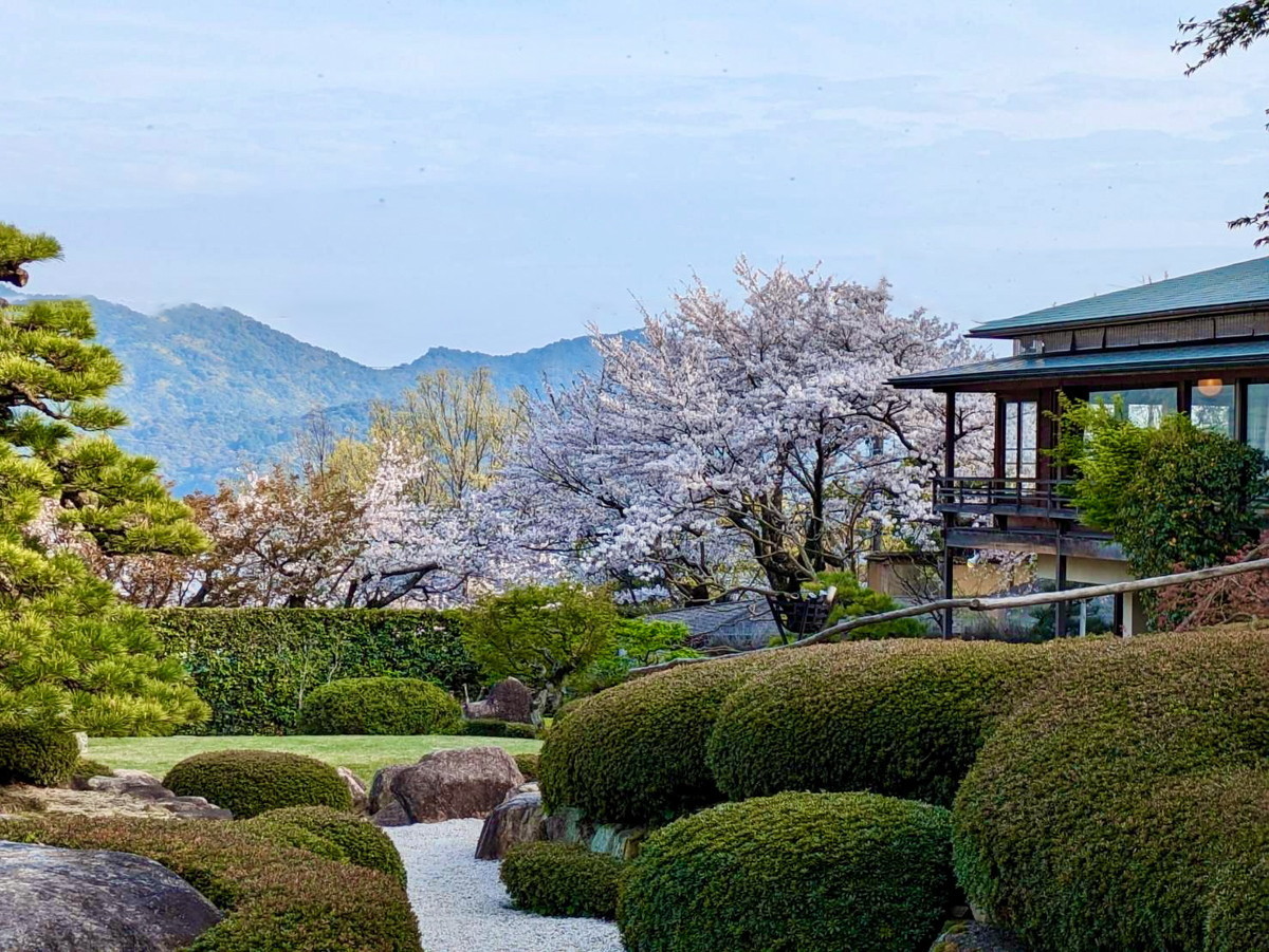 This room was constructed in a raised-floor style that projects into the garden. It contains a total of 43 tatami mats, and is a large room suitable for families. The large windows offer a panoramic view of the sea, mountains, sky, and garden. In springtime, a beautiful vista of cherry blossoms can be seen.