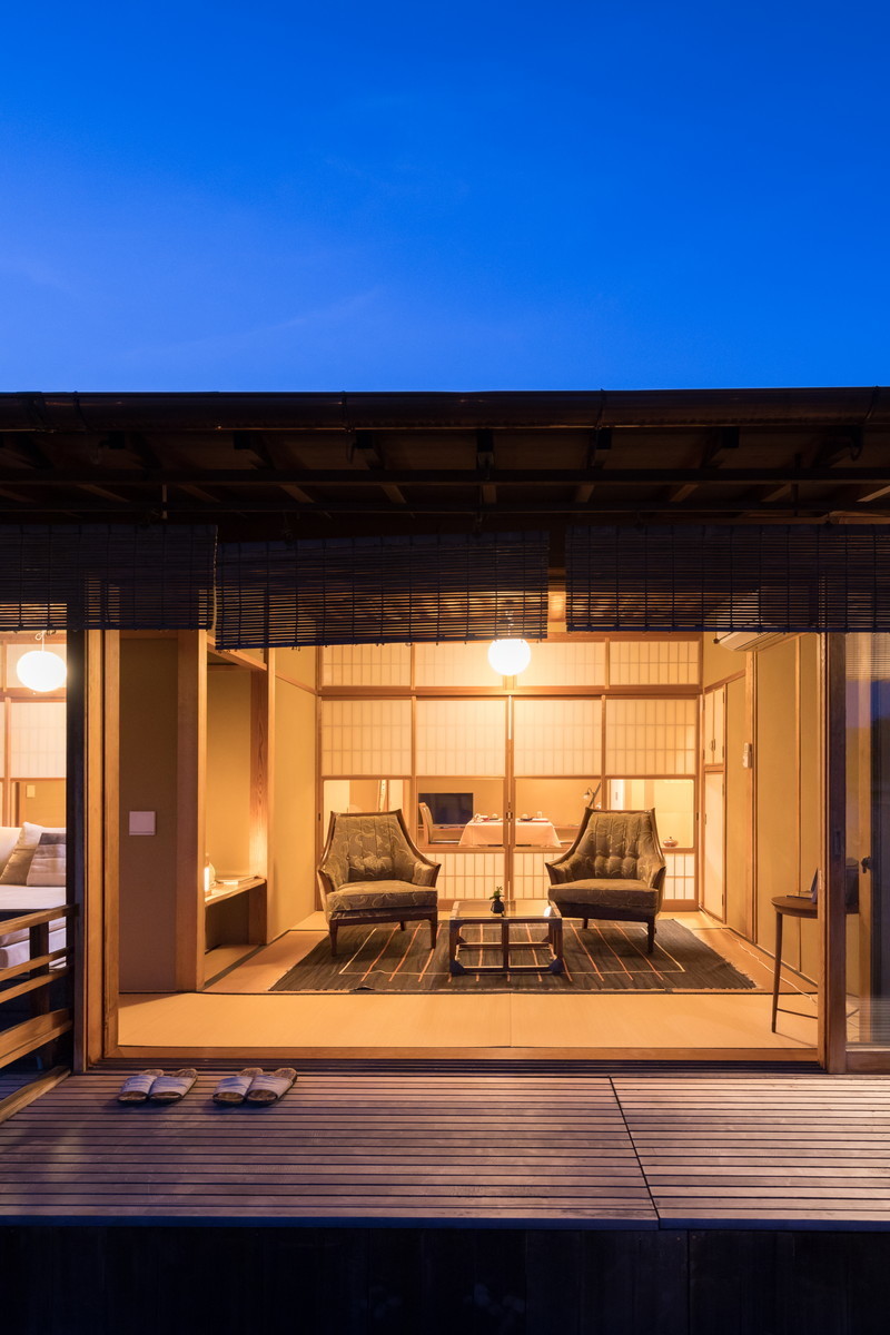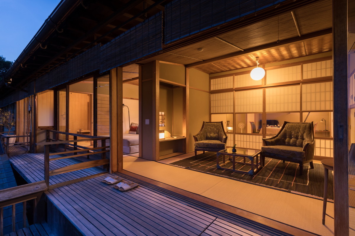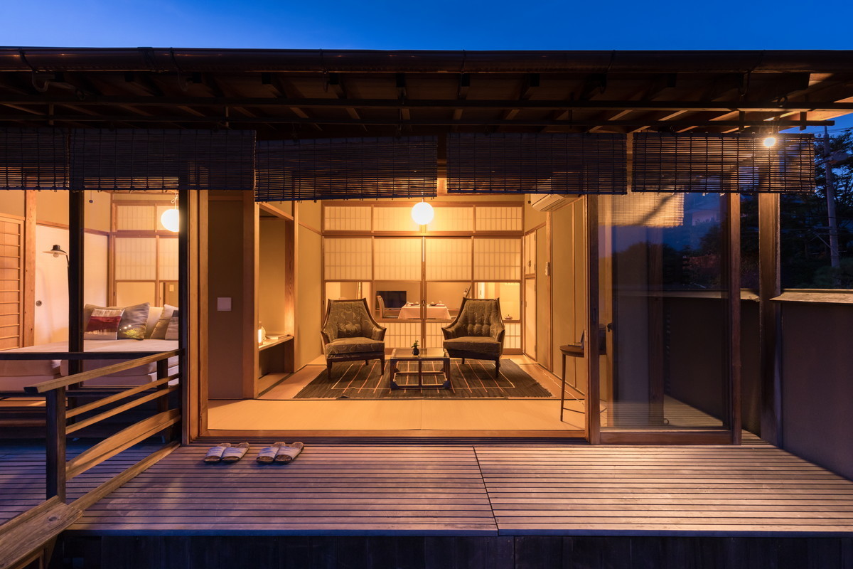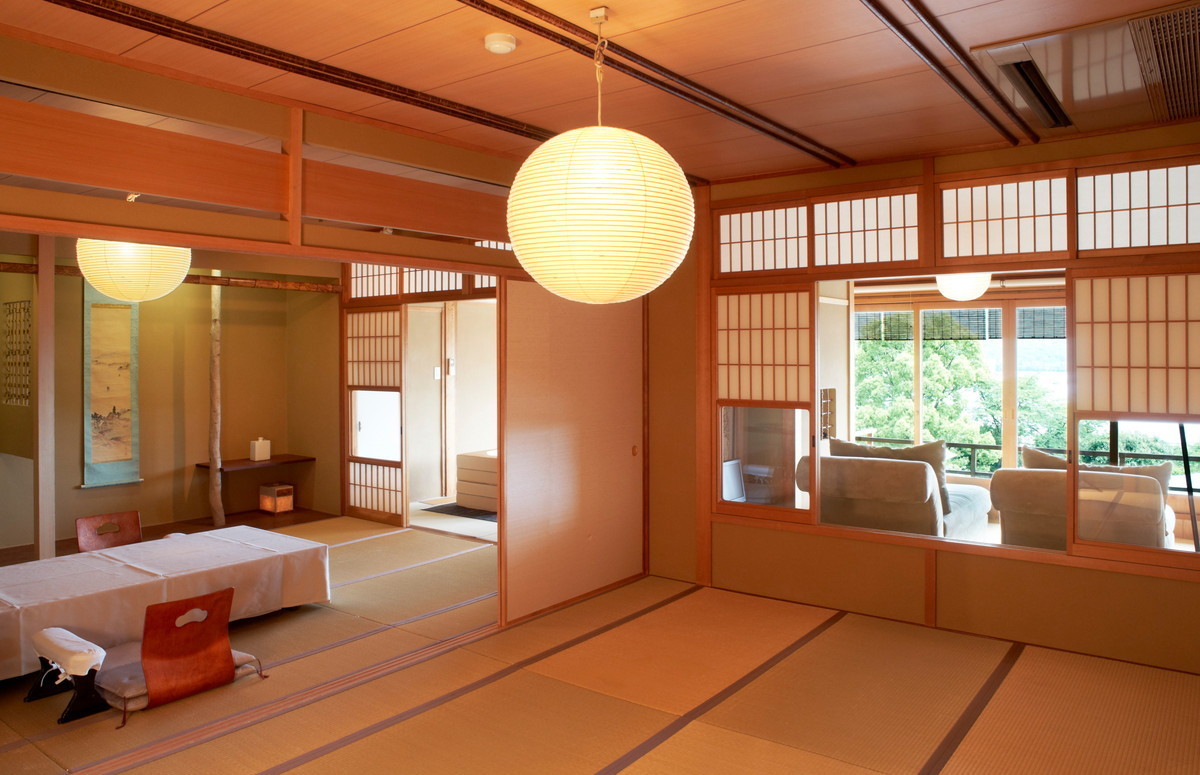 This is the 2F room (main building) with two large rooms. All three of the 2F rooms have ocean views. On a clear day, you can see all the way to Oshima and Shikoku. This is the only room which provides a view of the islands of the Seto Inland Sea beyond Miyajima.