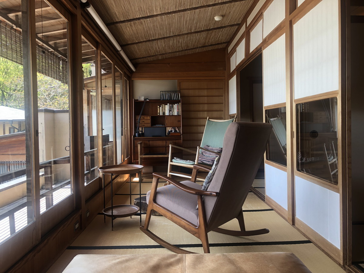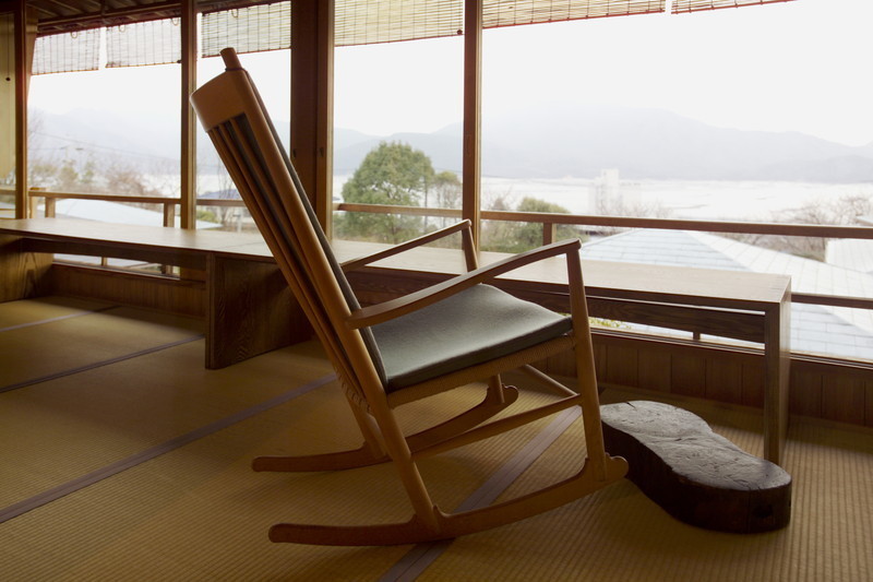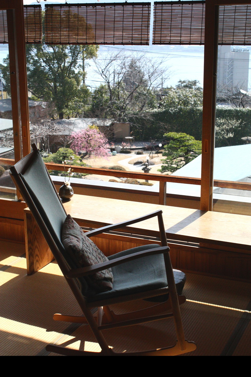 - ハンスウェグナーのロッキングチェアーと石亭オリジナルのソファーがあります。