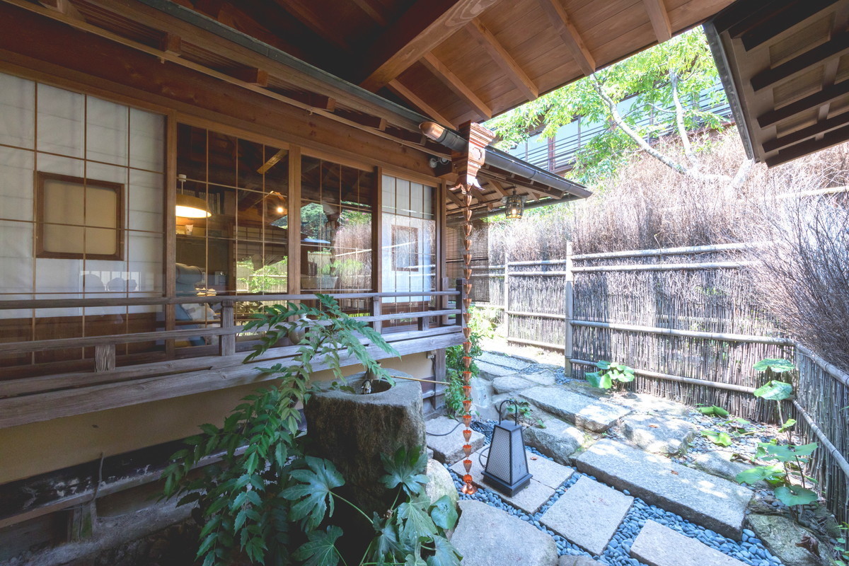 - 聖山と同じく海は見えないお部屋ですが、見上げる山並みとそれを借景にするお庭は見事です。