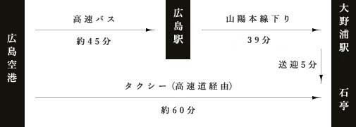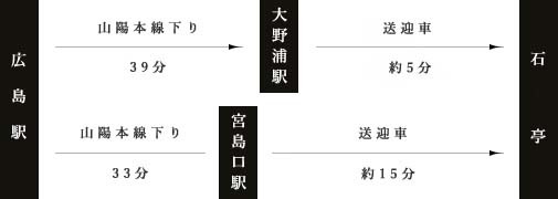 山陽本線「大野浦駅」より車5分 「宮島口駅」より車15分
